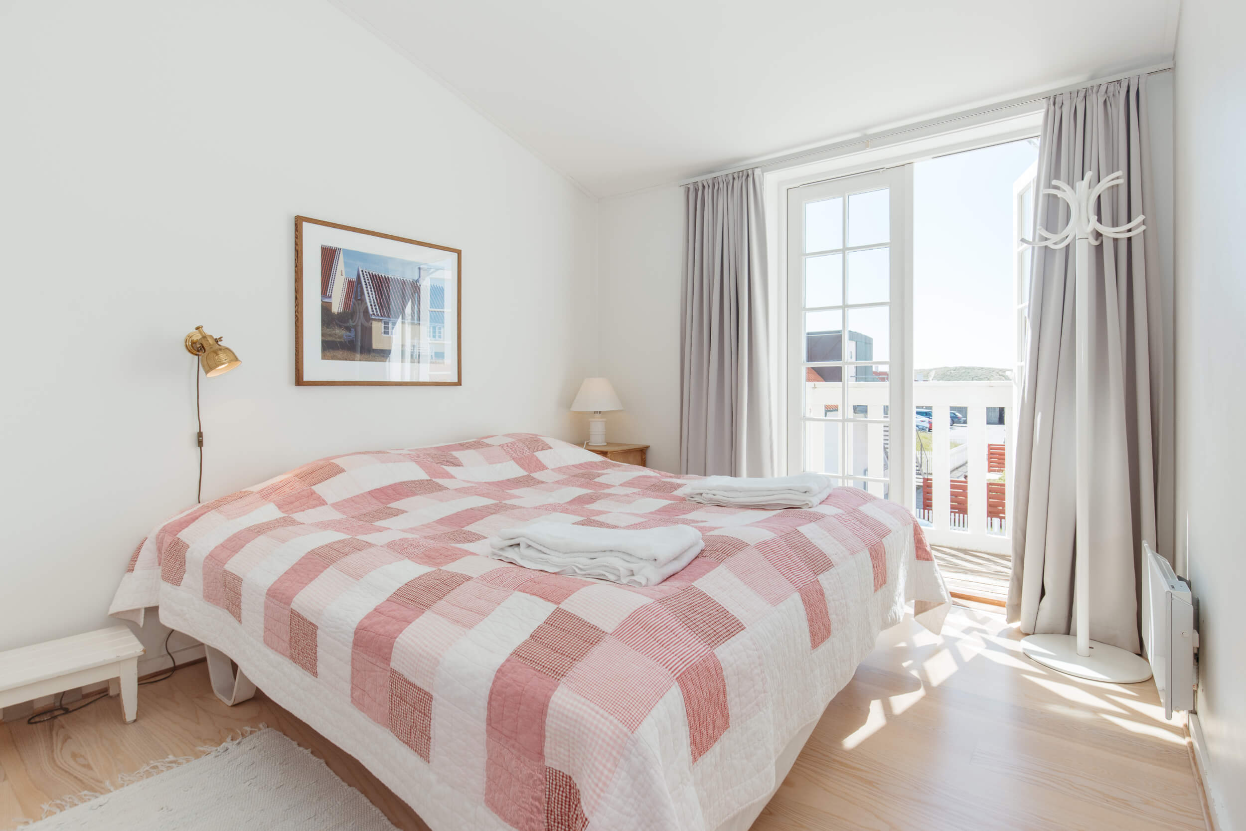 2 soveværelser, 1 dobbelt seng / 1 køjeseng. Begge værelser har altan. Bad og toilet.