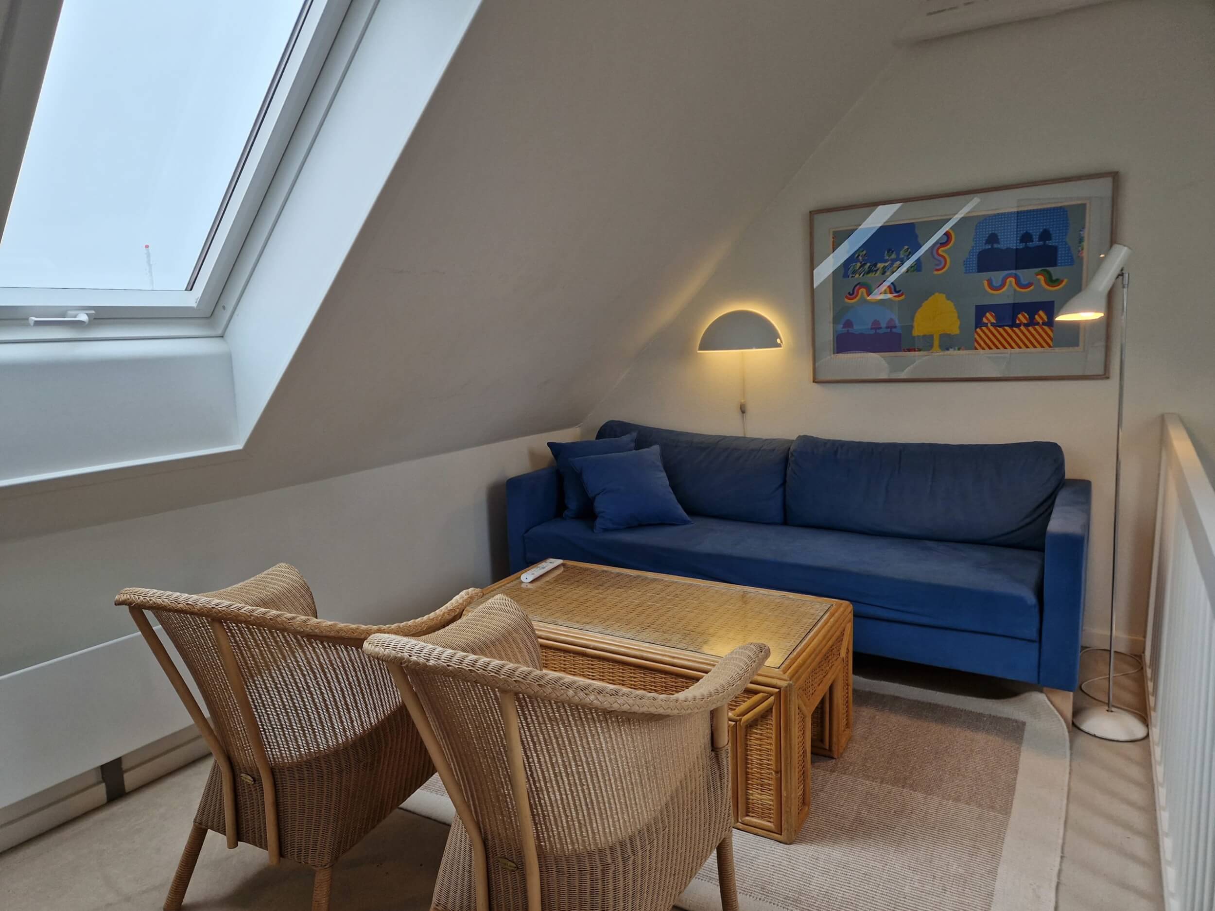 Studie med ophold/soveafdeling. Hemsen er her udnyttet i den øverste etage af hovedbygningen med skråvægge og vinduer, så man har udsigt til alle verdenshjørner.